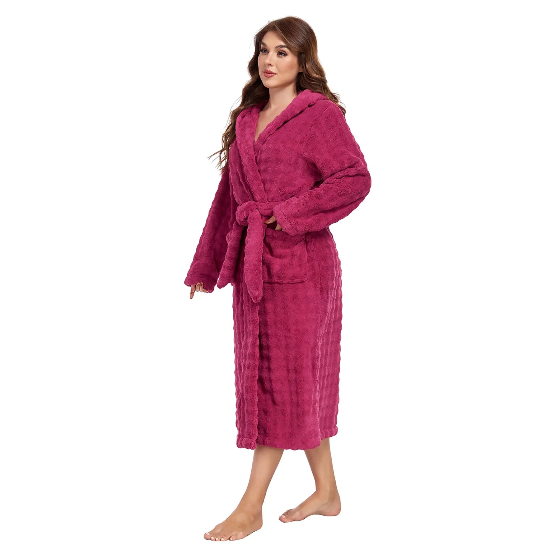 This extra-long fleece bathrobe features a generous hood that provides additional warmth and comfort. Whether you’re enjoying a chilly morning coffee or snuggling up at night, the hood adds an extra layer to keep you cozy. Additionally, the two spacious pockets are a practical feature that allows you to keep small items close at hand—be it your phone or a snack. Enjoy the combination of functionality and luxury with this thoughtfully designed robe.