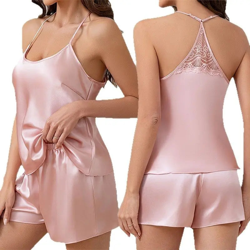 Discover the ultimate in relaxation with our Womens Casual Silk Pajamas. Designed for the modern woman, this loungewear set combines luxurious silk with delicate lace details, creating an irresistible blend of comfort and sophistication. Whether you're unwinding at home or enjoying a cozy night in, these pajamas are perfect for lounging in style. The breathable silk fabric ensures you stay cool during warm nights, while the elegant lace adds a touch of glamour to your loungewear collection. Explore how our womens pajamas can transform your downtime into a lavish experience.
